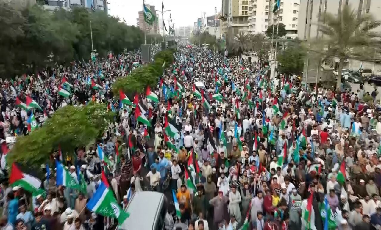 شبکه تلویزیونی الجزیره روز دوشنبه با انتشار تصاویری از راهپیمایی گسترده مردم پاکستان در همبستگی با غزه گزارش داد که «هزاران نفر در شهر کراچی پاکستان با در دست داشت پرچمهای فلسطین و بنرهایی در حمایت از غزه و درخواست برای پایان جنگ در این راهپیمایی شرکت کردند.»