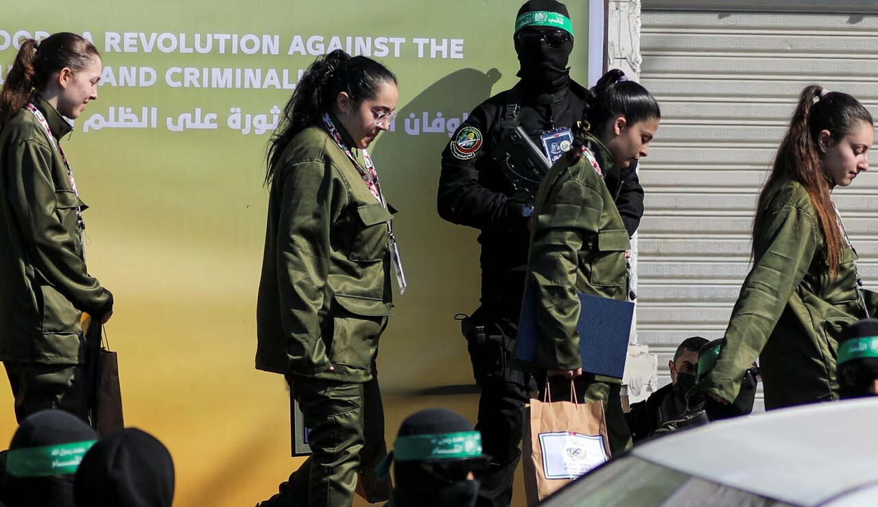 نمایندگان صلیب سرخ و یک مبارز حماس در تصاویر در حال امضای اسناد قبل از آزادی دیده شدند. طبق روند آتش بس غزه، حماس چهار سرباز زن اسرائیلی را به نام های کارینا ریف، دانیلا گیلبوآ، نااما لوی و لیری آلباگ آزاد کرد.